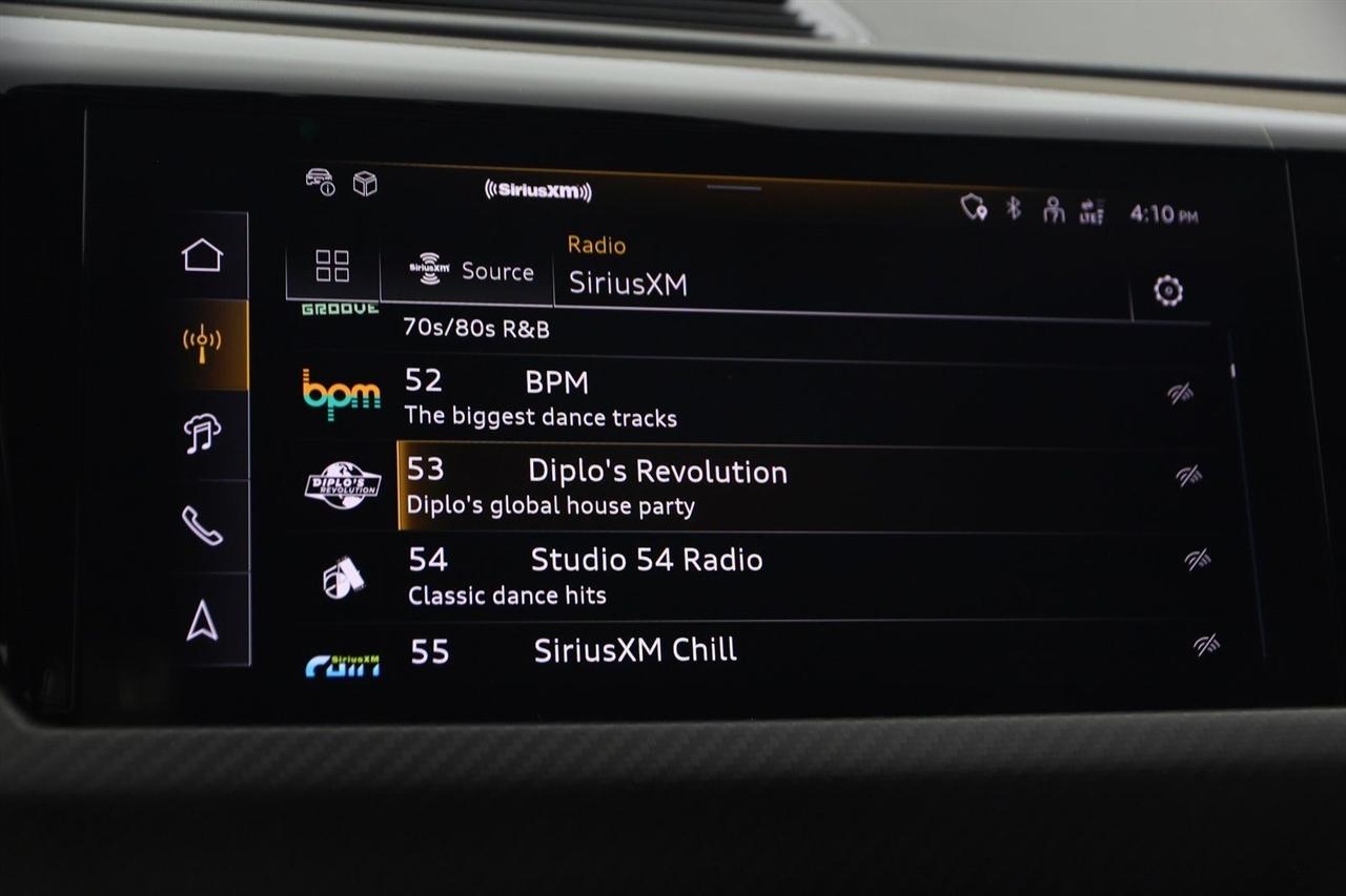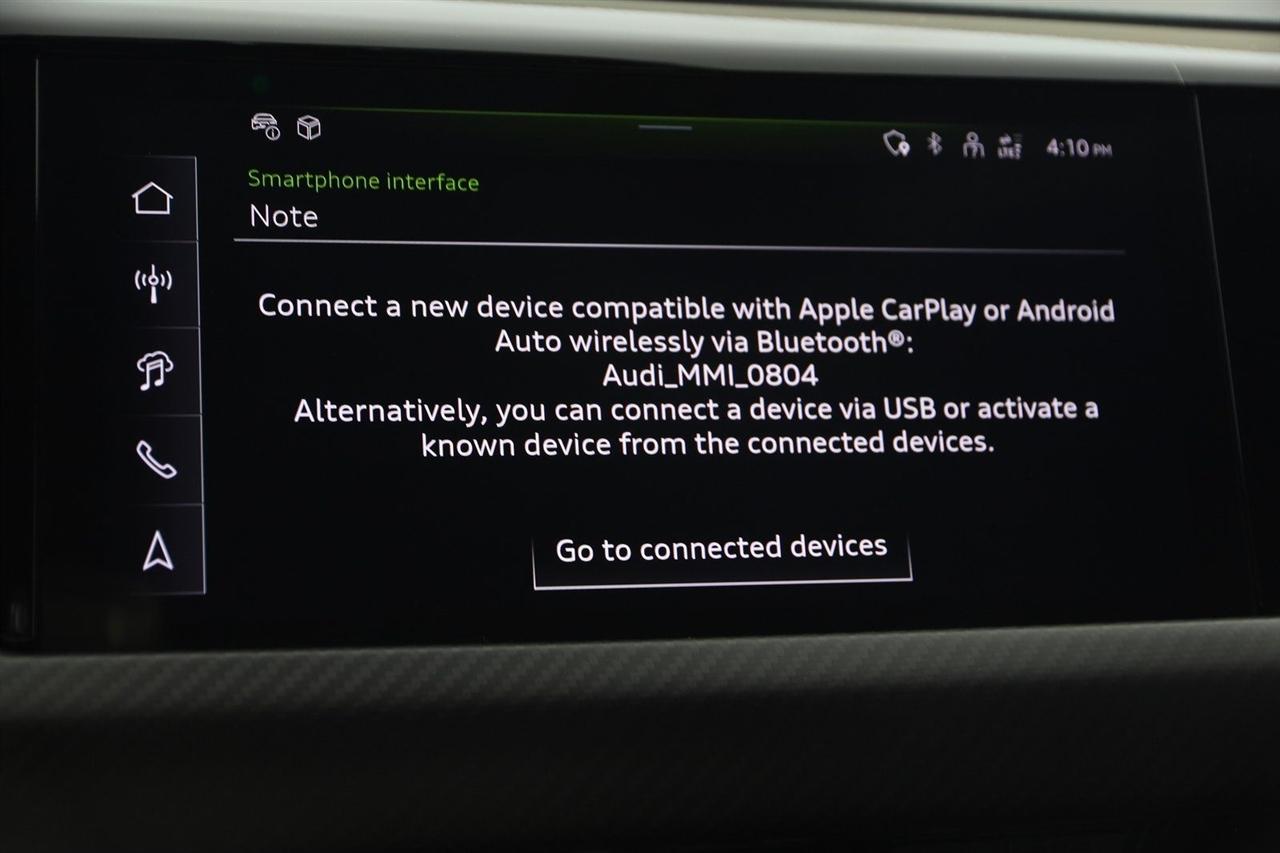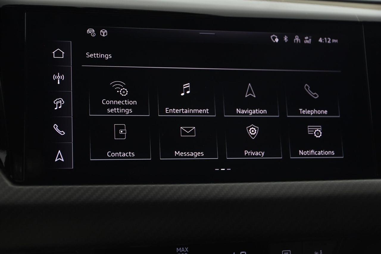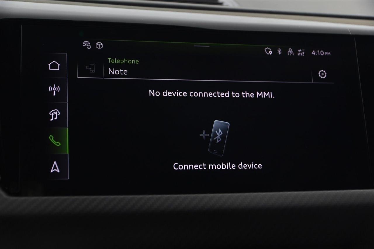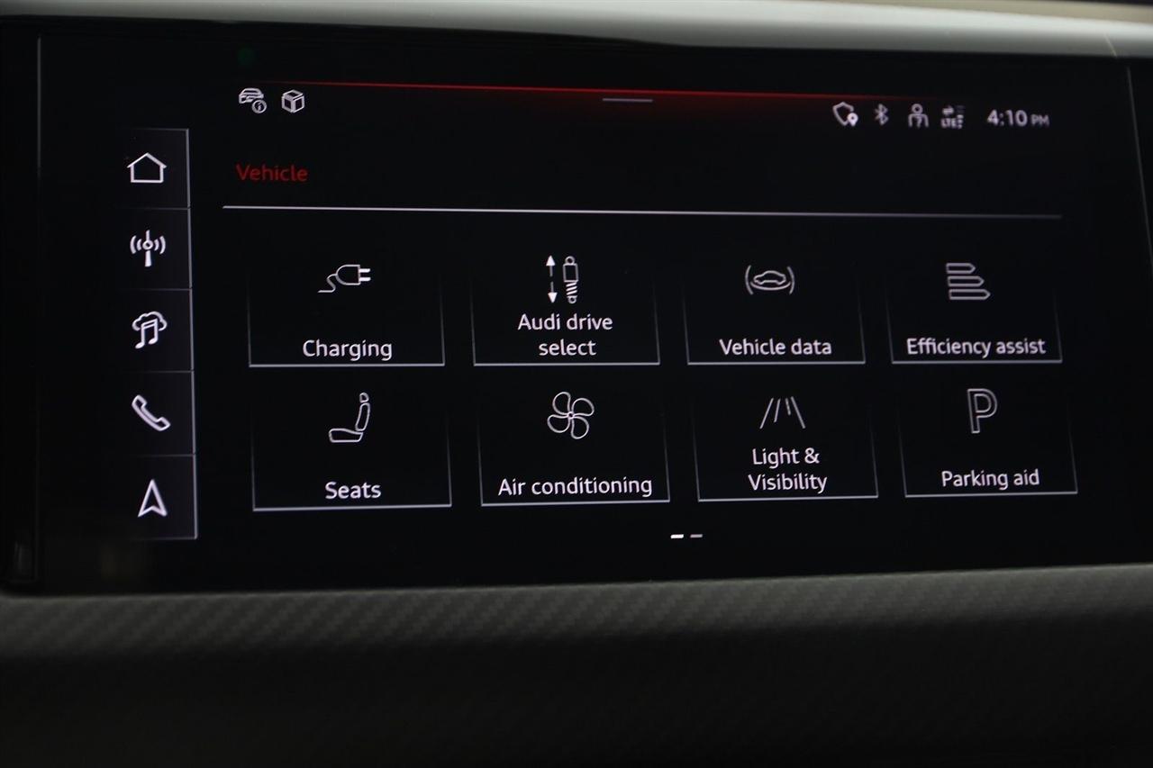 Navigation, Back Up Camera, Bluetooth, Heated Seats, Touch Screen, Heated Steering Wheel, Blind Spot, Apple Play, 4D Sedan, Electric ZEV, 1-Speed Automatic, quattro, Mythos Black Metallic, Navigation System.