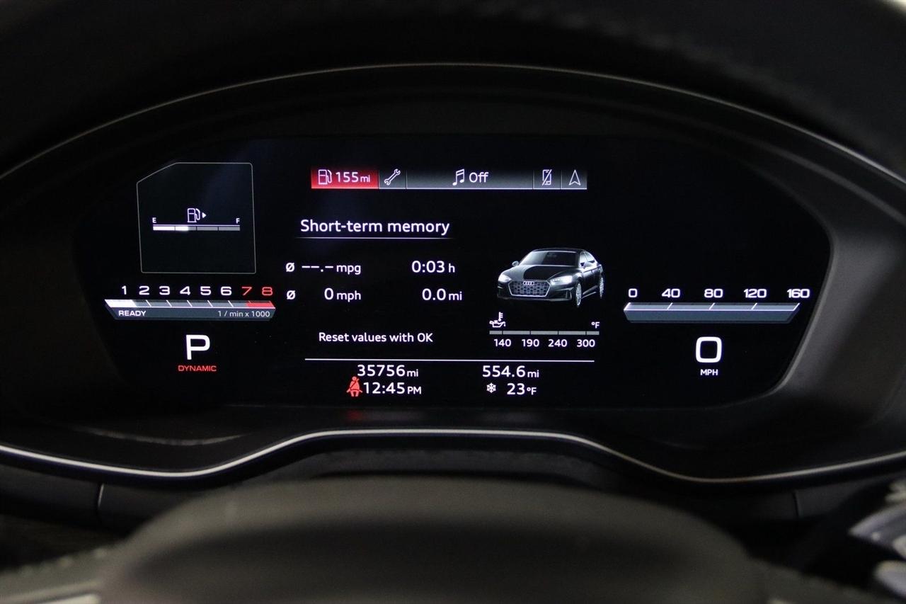 Navigation, Bluetooth, Back Up Camera, Panoramic Roof, Heated Seats, Touch Screen, 10 Speakers, 4-Wheel Disc Brakes, ABS brakes, Air Conditioning, Alloy wheels, AM/FM radio, Anti-whiplash front head restraints, Audi Connect NAV & PLUS, Auto High-beam Headlights, Auto-dimming Rear-View mirror, Automatic temperature control, Brake assist, Bumpers: body-color, Compass, Delay-off headlights, Driver door bin, Driver vanity mirror, Dual front impact airbags, Dual front side impact airbags, Electronic Stability Control, Emergency communication system: Audi connect CARE, Exterior Parking Camera Rear, Four wheel independent suspension, Front anti-roll bar, Front Bucket Seats, Front Center Armrest, Front dual zone A/C, Front fog lights, Front reading lights, Garage door transmitter: HomeLink, Genuine wood console insert, Genuine wood dashboard insert, Genuine wood door panel insert, Heated door mirrors, Heated front seats, Heated Front Sport Seats, Heated steering wheel, Illuminated entry, Knee airbag, Leather Seating Surfaces, Leather Shift Knob, Leather steering wheel, Low tire pressure warning, MMI Navigation Plus, Navigation Package, Navigation System, Occupant sensing airbag, Outside temperature display, Overhead airbag, Overhead console, Panic alarm, Passenger door bin, Passenger vanity mirror, Power adjustable front head restraints, Power door mirrors, Power driver seat, Power Liftgate, Power moonroof, Power passenger seat, Power steering, Power windows, Radio data system, Radio: Audi Sound System, Rain sensing wipers, Rear air conditioning, Rear anti-roll bar, Rear reading lights, Rear seat center armrest, Rear window defroster, Remote keyless entry, Speed control, Speed-sensing steering, Speed-Sensitive Wipers, Split folding rear seat, Steering wheel mounted audio controls, Tachometer, Telescoping steering wheel, Tilt steering wheel, Traction control, Traffic Sign Recognition, Trip computer, Turn signal indicator mirrors, Variably intermittent wipers, Wheels: 18" 5-Double-Spoke Design. CARFAX One-Owner. Clean CARFAX. 24/32 City/Highway MPG Odometer is 7359 miles below market average!