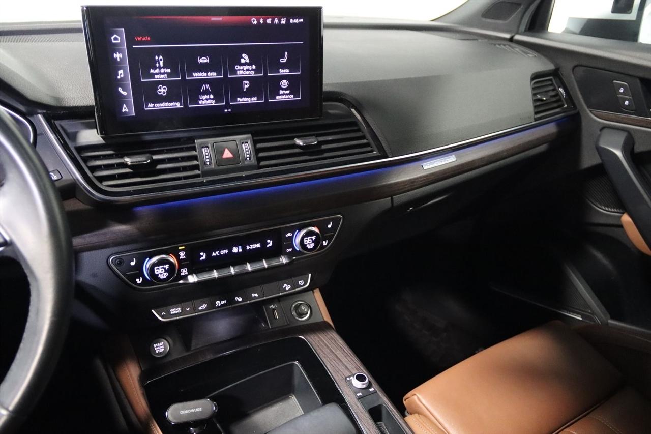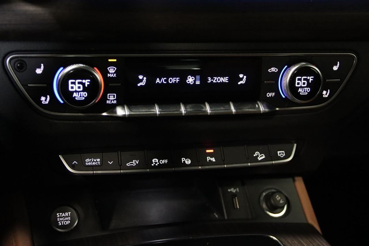 Navigation, Bluetooth, Back Up Camera, Sun/Moon Roof, Touch Screen, 10 Speakers, 4-Wheel Disc Brakes, ABS brakes, Air Conditioning, Alloy wheels, AM/FM radio, Auto High-beam Headlights, Auto-dimming Rear-View mirror, Automatic temperature control, Axle Ratio: 5.30, Brake assist, Bumpers: body-color, Compass, Delay-off headlights, Driver door bin, Driver vanity mirror, Dual front impact airbags, Dual front side impact airbags, Electronic Stability Control, Emergency communication system: Audi connect CARE, Exterior Parking Camera Rear, Four wheel independent suspension, Front anti-roll bar, Front Bucket Seats, Front Center Armrest, Front dual zone A/C, Front fog lights, Front reading lights, Garage door transmitter: HomeLink, Genuine wood console insert, Genuine wood dashboard insert, Genuine wood door panel insert, Heated 8-Way Power Front Seats, Heated door mirrors, Heated front seats, Illuminated entry, Leather Seating Surfaces, Leather Shift Knob, Low tire pressure warning, Navigation System, Occupant sensing airbag, Outside temperature display, Overhead airbag, Overhead console, Panic alarm, Passenger door bin, Passenger vanity mirror, Power door mirrors, Power driver seat, Power Liftgate, Power passenger seat, Power steering, Power windows, Radio data system, Radio: Audi Sound System, Rain sensing wipers, Rear air conditioning, Rear anti-roll bar, Rear fog lights, Rear reading lights, Rear seat center armrest, Rear window defroster, Rear window wiper, Remote keyless entry, Roof rack, Security system, Speed control, Speed-sensing steering, Speed-Sensitive Wipers, Split folding rear seat, Spoiler, Sport steering wheel, Steering wheel mounted audio controls, Tachometer, Telescoping steering wheel, Tilt steering wheel, Traction control, Trip computer, Turn signal indicator mirrors, Variably intermittent wipers, Wheels: 20" 5-Double-Spoke-Star Design Bi-Color. Clean CARFAX.