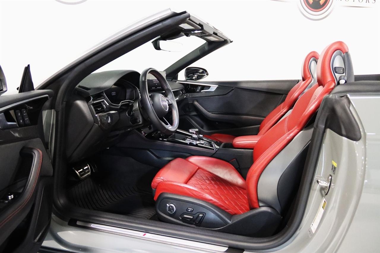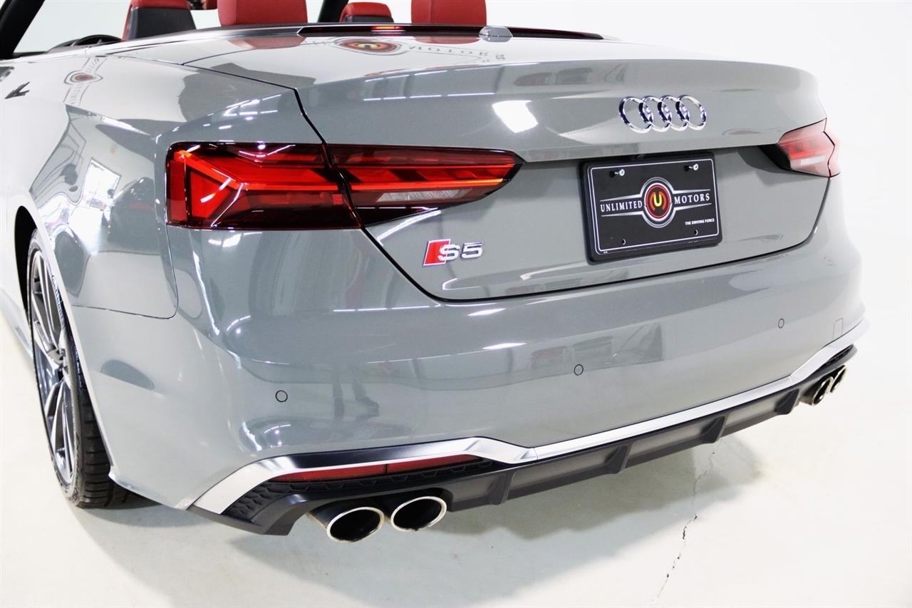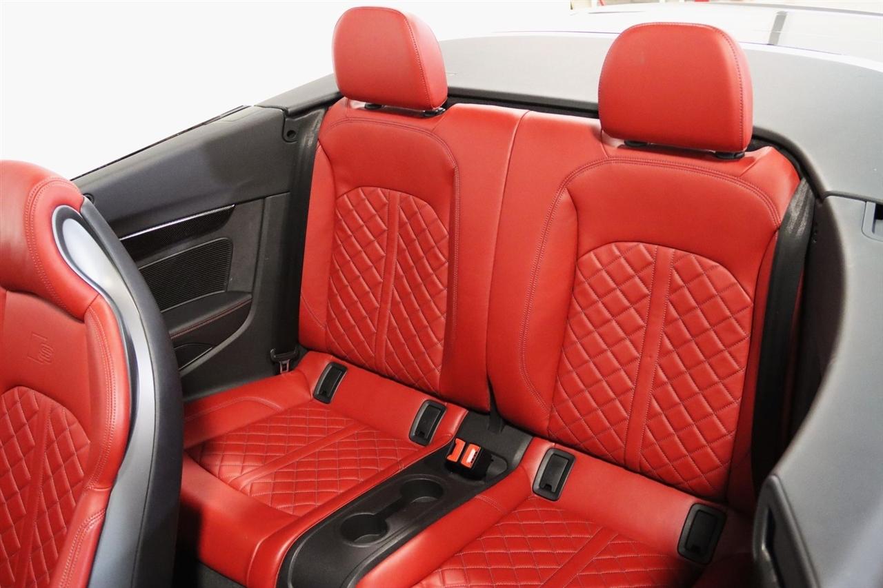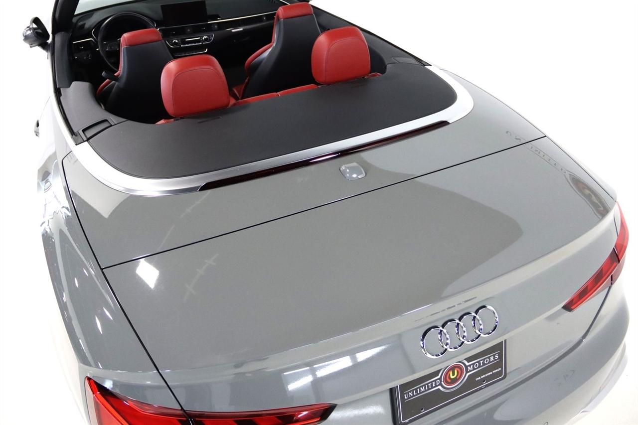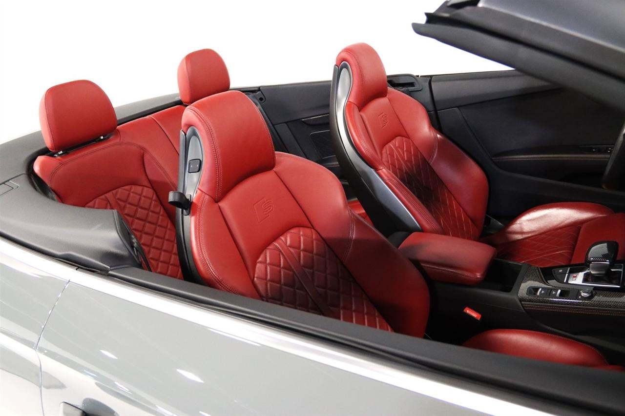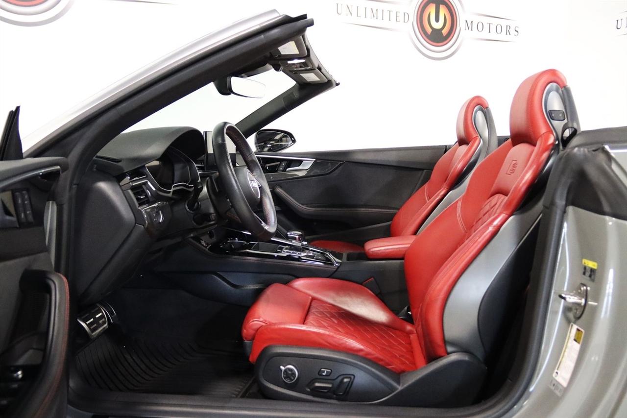 Bluetooth, Back Up Camera, Soft Top, Heated Seats, Touch Screen, 10 Speakers, 4-Wheel Disc Brakes, ABS brakes, Air Conditioning, Alarm System w/Motion Sensor, Alloy wheels, AM/FM radio, Audi Active Lane Assist, Audi Adaptive Cruise Control w/Traffic Jam Assist, Audi Advanced Key, Audi Guard All-Weather Mats, Audi Phone Box, Audi S Beam - Front Doors Only, Audi Side Assist w/Pre Sense Rear, Audi Virtual Cockpit Plus, Auto High-beam Headlights, Auto-Dimming Exterior Mirrors, Auto-dimming Rear-View mirror, Automatic temperature control, Bang & Olufsen Sound System w/3D Sound, Brake assist, Bumpers: body-color, Compass, Convenience Package, Convertible roof lining, Convertible roof wind blocker, Delay-off headlights, Driver door bin, Driver Seat Memory, Driver vanity mirror, Dual front impact airbags, Dual front side impact airbags, Electronic Stability Control, Emergency communication system: Audi connect CARE, Exterior Parking Camera Rear, Fine Nappa Leather Seating Surfaces, Four wheel independent suspension, Front anti-roll bar, Front Bucket Seats, Front Center Armrest, Front dual zone A/C, Front fog lights, Front reading lights, Garage door transmitter: HomeLink, Glass rear window, Hands-On Detection Steering Wheel, Heated door mirrors, Heated Front S Sport Seats, Heated front seats, Heated Steering Wheel, Illuminated entry, Integrated roll-over protection, Integrated Toll Module Delete, Knee airbag, Leather Shift Knob, Leather steering wheel, Leatherette Covered Center Console & Door Armrests, Low tire pressure warning, Occupant sensing airbag, Outside temperature display, Panic alarm, Parking System Plus, Passenger door bin, Passenger vanity mirror, Power convertible roof, Power door mirrors, Power driver seat, Power Folding Exterior Mirrors, Power passenger seat, Power steering, Power windows, Premium Plus Package, Radio data system, Radio: Audi Sound System, Rain sensing wipers, Rear air conditioning, Rear anti-roll bar, Rear reading lights, Rear window defroster, Red Brake Calipers, Remote keyless entry, S Sport Package, Semiconductor Shortage Credit, SiriusXM All Access Service, Speed control, Speed-sensing steering, Speed-Sensitive Wipers, Split folding rear seat, Sport Adaptive Damping Suspension, Sport Exhaust Resonator, Sport Rear Differential, Steering wheel mounted audio controls, Tachometer, Telescoping steering wheel, Tilt steering wheel, Top View Camera System, Traction control, Trip computer, Turn signal indicator mirrors, USB Cables, Variably intermittent wipers, Wheels: 19" 5-Double-Arm Design Bi-Color Finish. Clean CARFAX. 21/28 City/Highway MPG