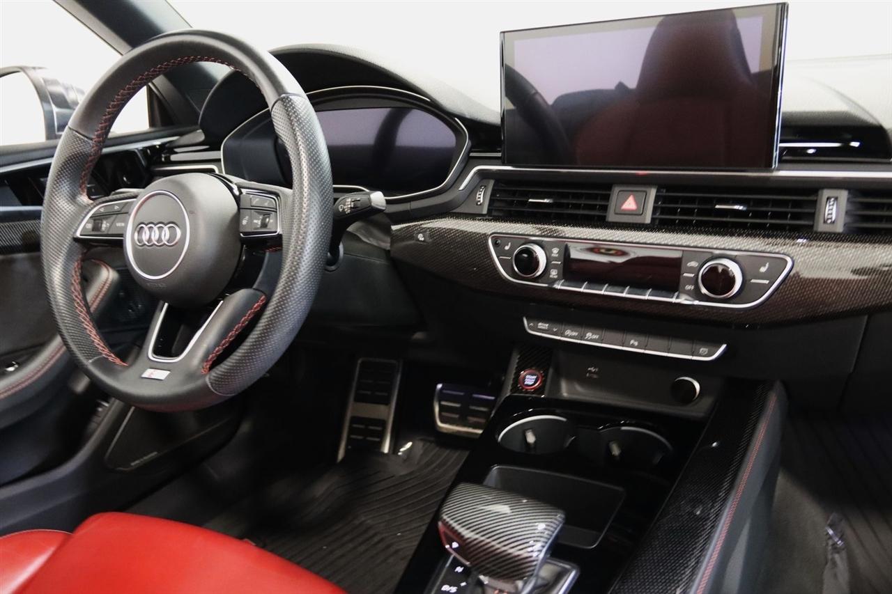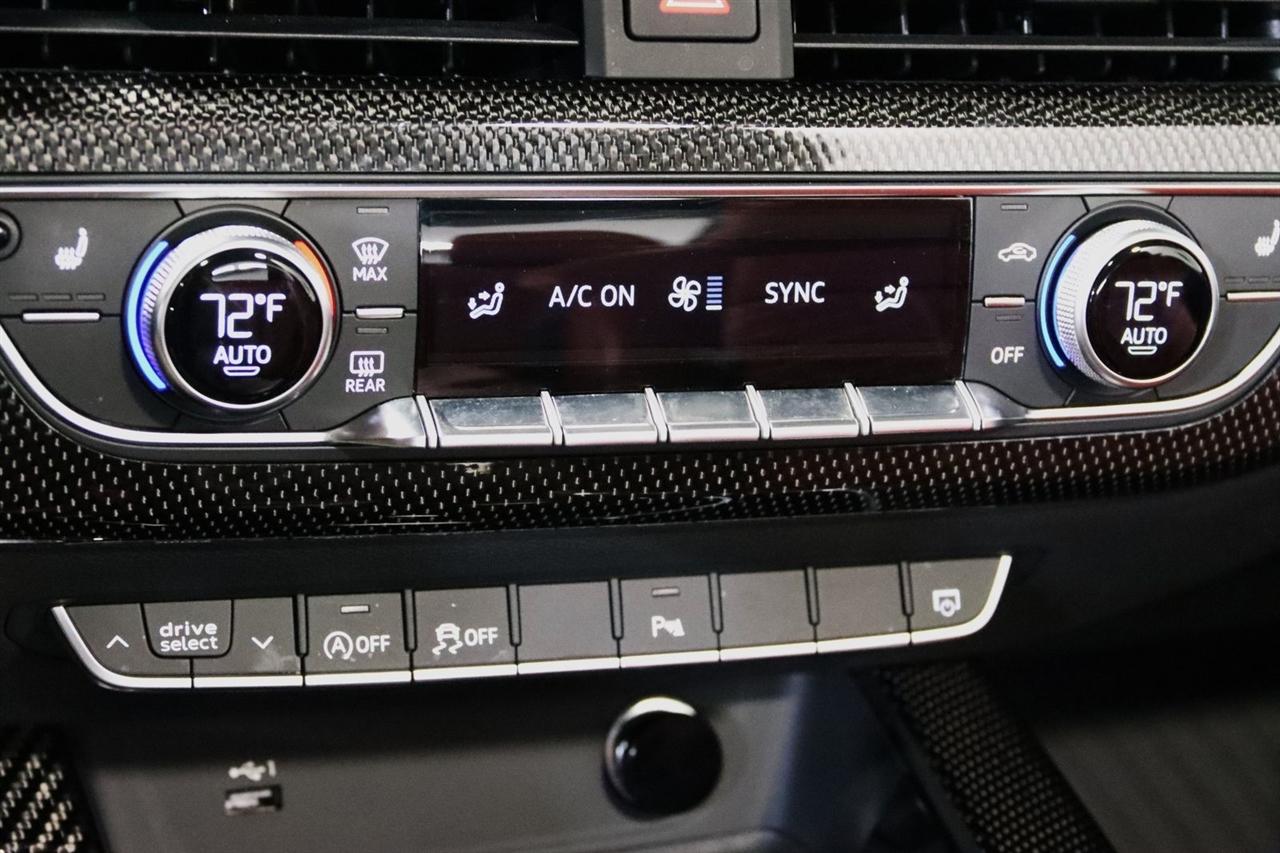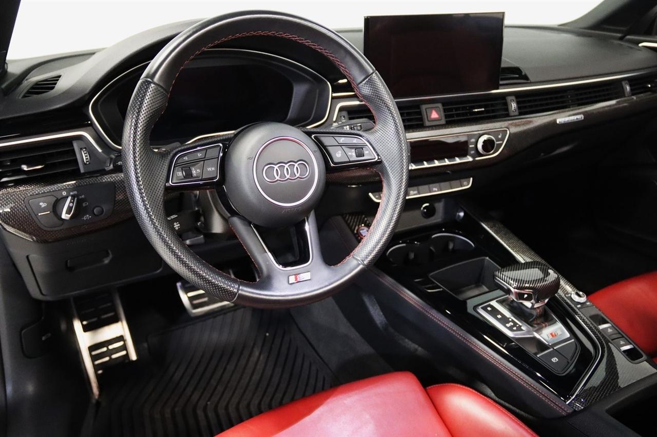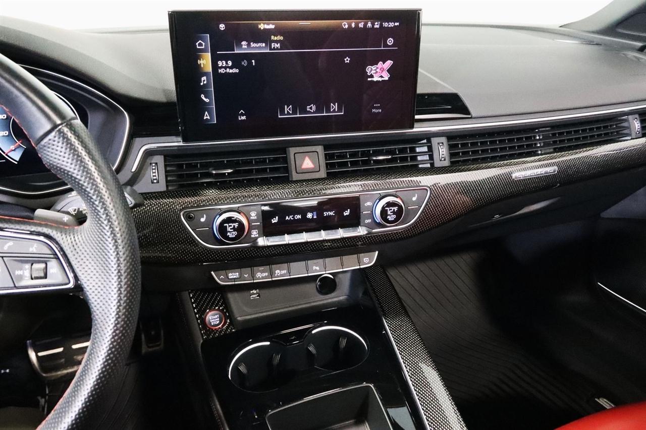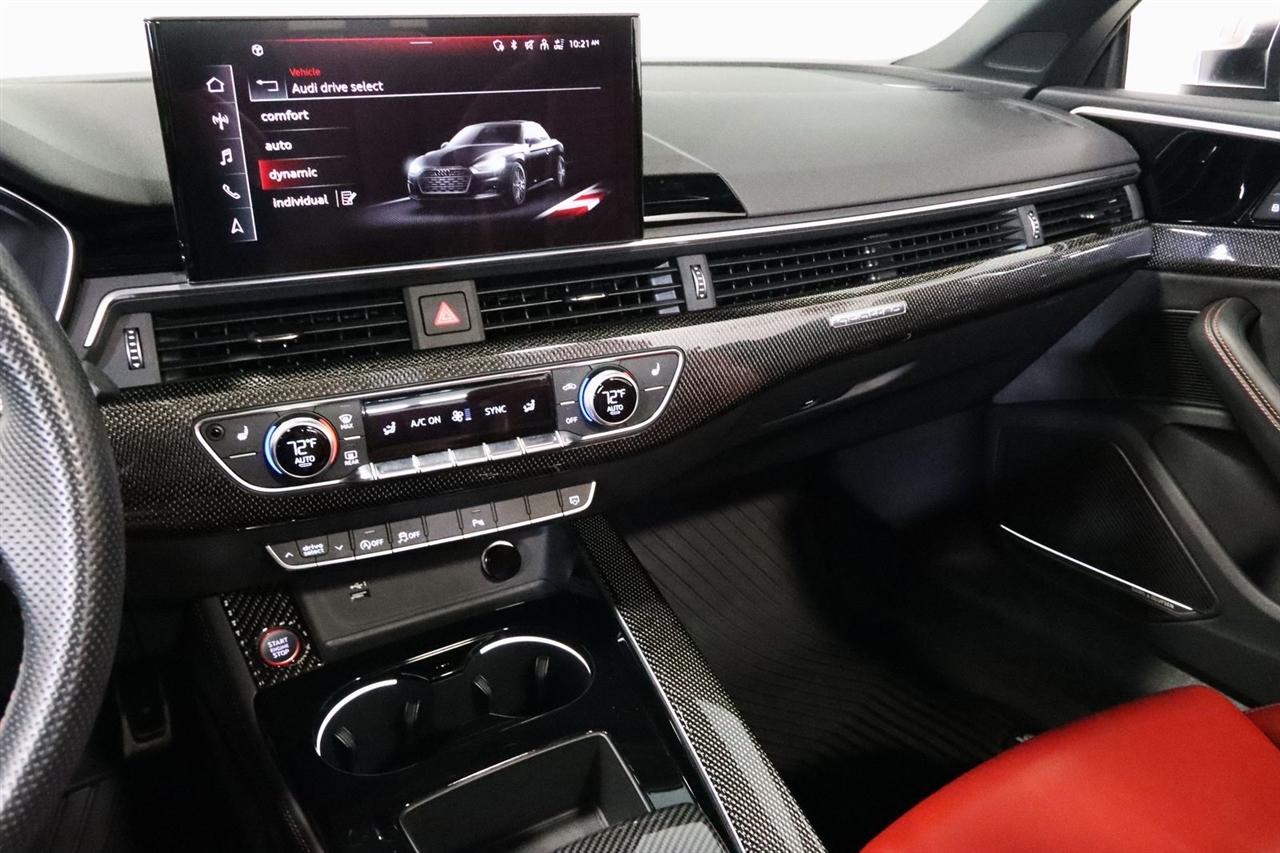 Bluetooth, Back Up Camera, Soft Top, Heated Seats, Touch Screen, 10 Speakers, 4-Wheel Disc Brakes, ABS brakes, Air Conditioning, Alarm System w/Motion Sensor, Alloy wheels, AM/FM radio, Audi Active Lane Assist, Audi Adaptive Cruise Control w/Traffic Jam Assist, Audi Advanced Key, Audi Guard All-Weather Mats, Audi Phone Box, Audi S Beam - Front Doors Only, Audi Side Assist w/Pre Sense Rear, Audi Virtual Cockpit Plus, Auto High-beam Headlights, Auto-Dimming Exterior Mirrors, Auto-dimming Rear-View mirror, Automatic temperature control, Bang & Olufsen Sound System w/3D Sound, Brake assist, Bumpers: body-color, Compass, Convenience Package, Convertible roof lining, Convertible roof wind blocker, Delay-off headlights, Driver door bin, Driver Seat Memory, Driver vanity mirror, Dual front impact airbags, Dual front side impact airbags, Electronic Stability Control, Emergency communication system: Audi connect CARE, Exterior Parking Camera Rear, Fine Nappa Leather Seating Surfaces, Four wheel independent suspension, Front anti-roll bar, Front Bucket Seats, Front Center Armrest, Front dual zone A/C, Front fog lights, Front reading lights, Garage door transmitter: HomeLink, Glass rear window, Hands-On Detection Steering Wheel, Heated door mirrors, Heated Front S Sport Seats, Heated front seats, Heated Steering Wheel, Illuminated entry, Integrated roll-over protection, Integrated Toll Module Delete, Knee airbag, Leather Shift Knob, Leather steering wheel, Leatherette Covered Center Console & Door Armrests, Low tire pressure warning, Occupant sensing airbag, Outside temperature display, Panic alarm, Parking System Plus, Passenger door bin, Passenger vanity mirror, Power convertible roof, Power door mirrors, Power driver seat, Power Folding Exterior Mirrors, Power passenger seat, Power steering, Power windows, Premium Plus Package, Radio data system, Radio: Audi Sound System, Rain sensing wipers, Rear air conditioning, Rear anti-roll bar, Rear reading lights, Rear window defroster, Red Brake Calipers, Remote keyless entry, S Sport Package, Semiconductor Shortage Credit, SiriusXM All Access Service, Speed control, Speed-sensing steering, Speed-Sensitive Wipers, Split folding rear seat, Sport Adaptive Damping Suspension, Sport Exhaust Resonator, Sport Rear Differential, Steering wheel mounted audio controls, Tachometer, Telescoping steering wheel, Tilt steering wheel, Top View Camera System, Traction control, Trip computer, Turn signal indicator mirrors, USB Cables, Variably intermittent wipers, Wheels: 19" 5-Double-Arm Design Bi-Color Finish. Clean CARFAX. 21/28 City/Highway MPG